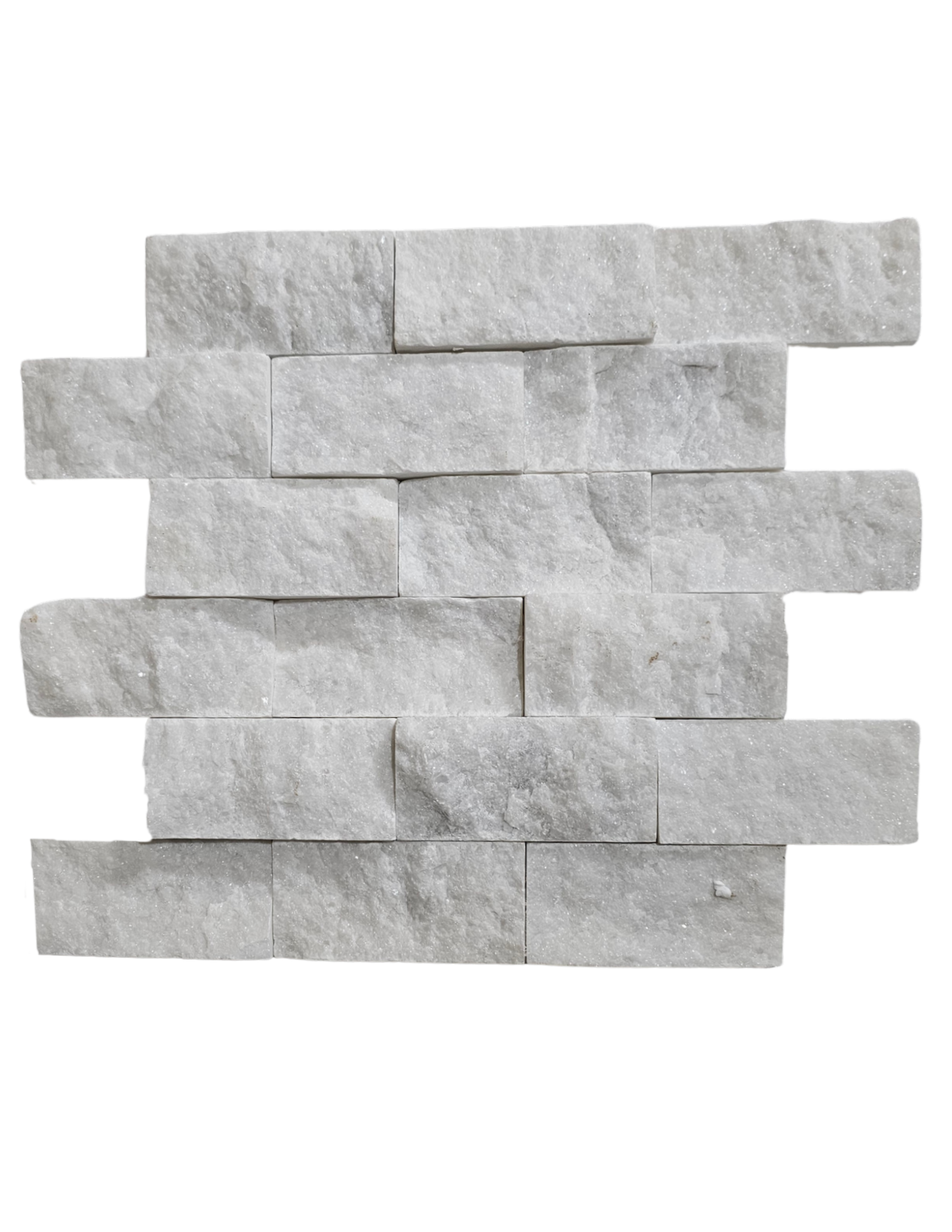 The Akoya 2×4 Splitface Marble Mosaic combines clean linear proportions with the rich texture of natural splitface marble. Its elongated format creates a balanced, contemporary pattern while maintaining organic movement and depth. Perfect for statement walls, shower surrounds, and architectural details, it adds sophistication and tactile appeal to any space.