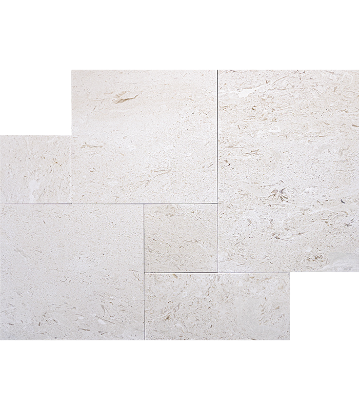 The French Pattern MYRA Shell Stone Premium Select is a premium tumbled limestone paver that blends timeless European elegance with natural coastal character. Featuring soft ivory and warm beige tones accented by subtle fossil detailing, this limestone showcases beautiful organic movement throughout each installation. Its tumbled finish enhances the naturally aged appearance while providing a comfortable, slip-resistant surface ideal for patios, pool decks, courtyards, and outdoor living spaces. The classic French Pattern layout introduces depth and architectural interest, creating a refined yet inviting atmosphere for both residential and commercial designs.